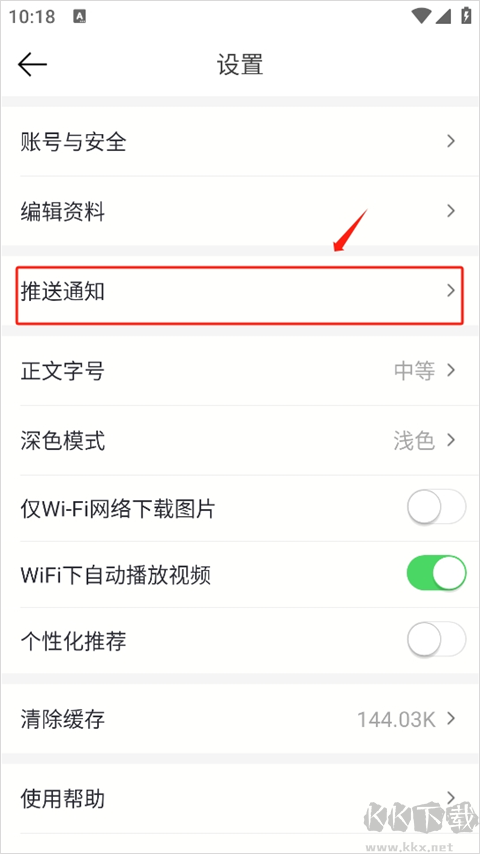 2、打開(kāi)“設(shè)置”頁(yè)面選擇“推送通知”。