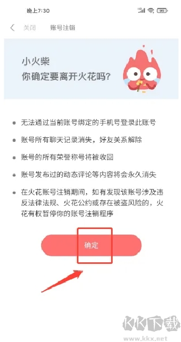 2、跳轉(zhuǎn)至賬號(hào)注銷頁(yè)面后,仔細(xì)閱讀相關(guān)說明,確認(rèn)無誤后點(diǎn)擊(確定)。
