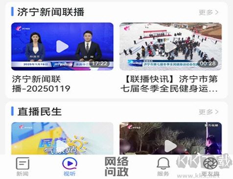 2、視聽:視聽模塊可直接收看(收聽)濟(jì)寧廣播電視臺 4 套電視節(jié)目和 4 套廣播節(jié)目的實(shí)時(shí)直播,實(shí)現(xiàn)最長 7 天之內(nèi)的節(jié)目回看和兩天之內(nèi)的節(jié)目預(yù)約收看;可以點(diǎn)播收看濟(jì)寧廣播電視臺所有獨(dú)家原創(chuàng)視頻節(jié)目。