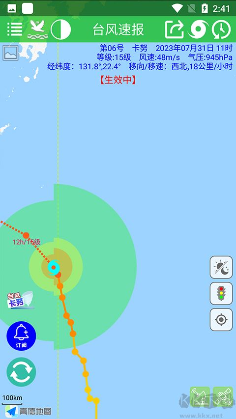 2、臺風(fēng)行進(jìn)路線清晰呈現(xiàn),走向趨勢和與您所在地的距離一目了然。