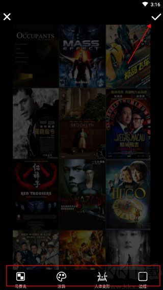 5、另外,點(diǎn)擊主界面的實(shí)用工具,,可以對(duì)圖片進(jìn)行馬賽克、涂鴉、人體變形、邊框的添加,編輯完成后,可以點(diǎn)擊右上角的√保存;
