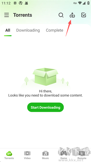 1、打開uTorrent App,點(diǎn)擊上方【+號(hào)】
