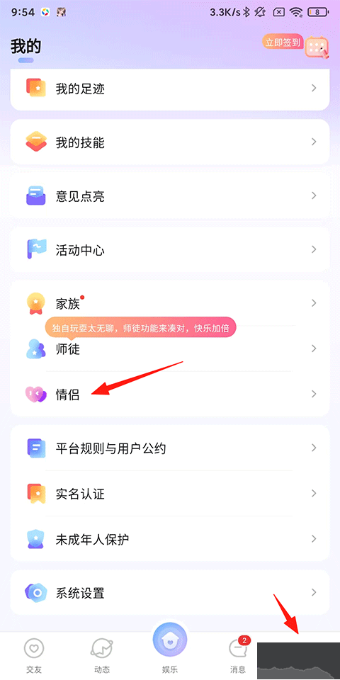 2、再點擊右上角的情侶。