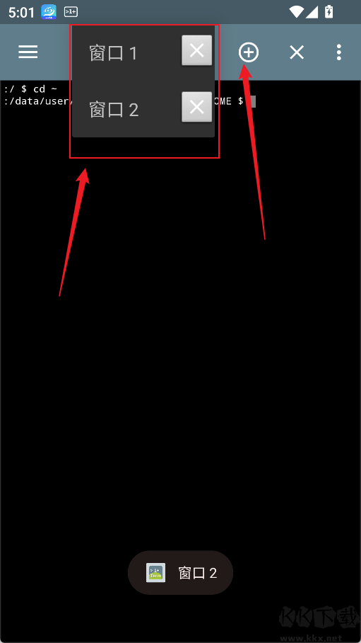 3、當(dāng)開啟了多個(gè)窗口后,用戶可以通過點(diǎn)擊左上角的切換按鈕,在不同窗口之間快速跳轉(zhuǎn)。比如一個(gè)窗口負(fù)責(zé)查看日志,另一個(gè)窗口運(yùn)行腳本,切換流暢,操作體驗(yàn)更接近桌面級(jí)終端。