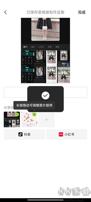 1、調(diào)整至滿意效果,可輕松編輯個人自拍照,支持一鍵分享并保存原圖。