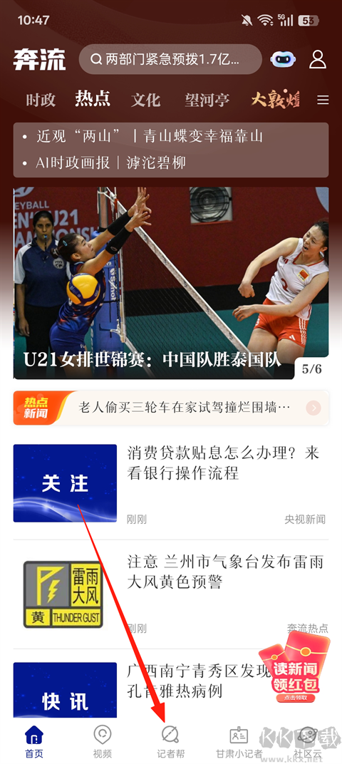 1、啟動奔流新聞應用,完成賬戶登入,輕觸【記者幫】入口。