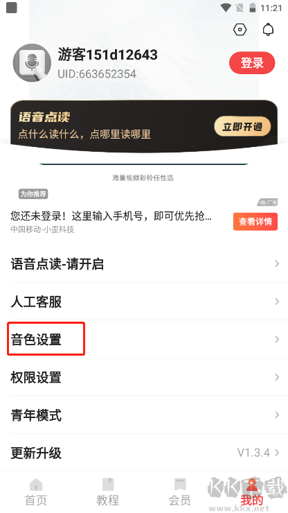 2、然后點(diǎn)擊【音色設(shè)置】;