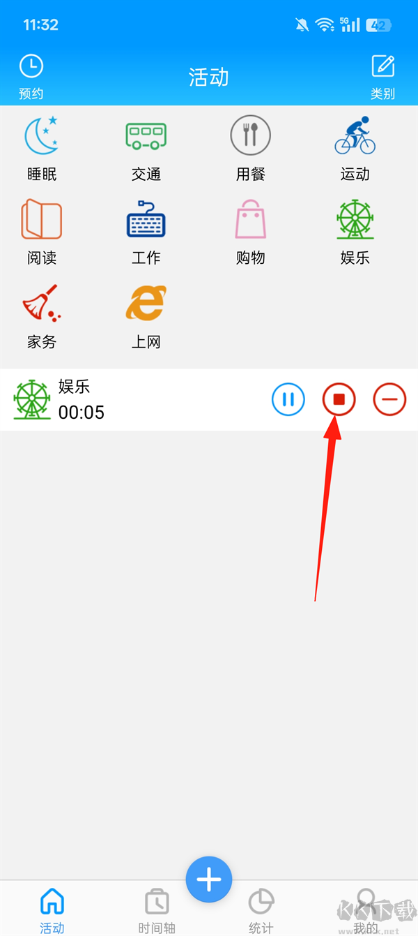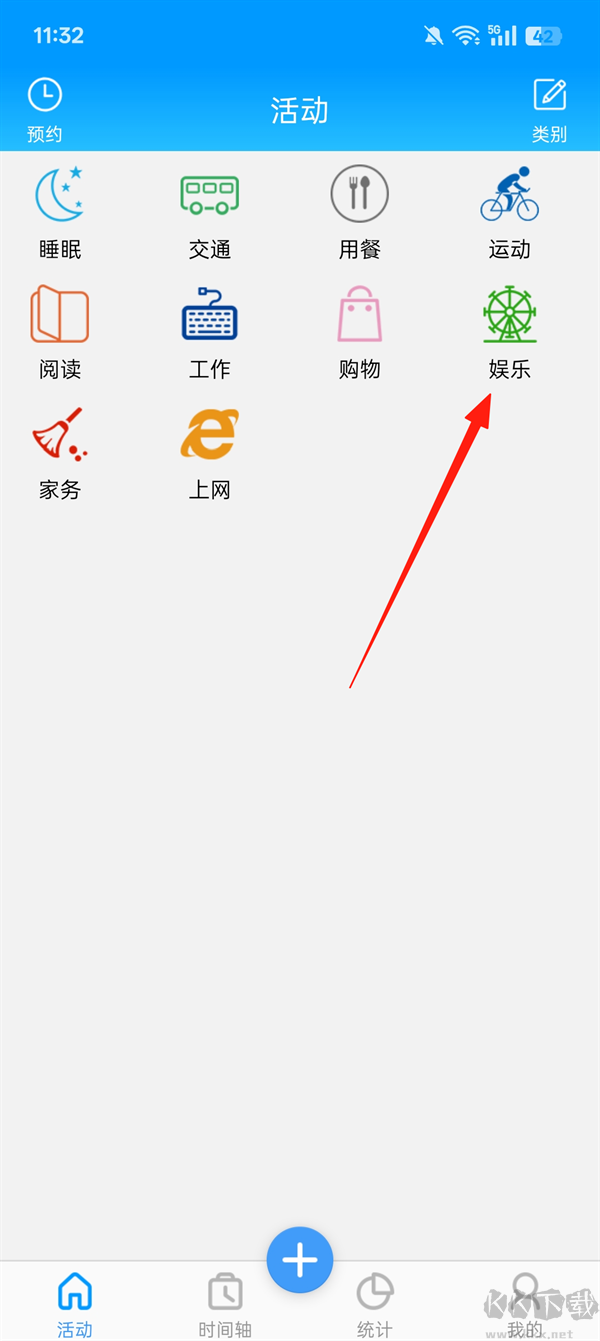 1、打開(kāi)軟件,選擇你要記錄時(shí)間的活動(dòng),以?shī)蕵?lè)為例