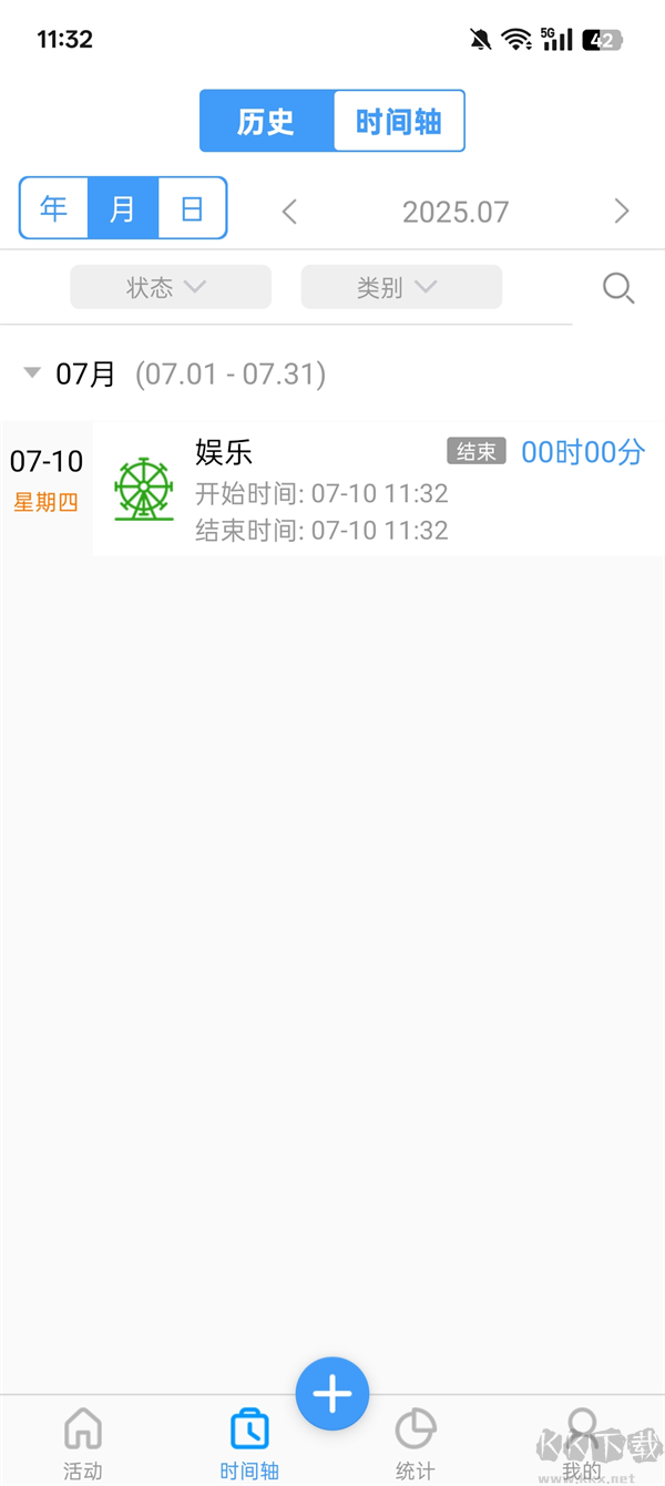 3、然后用戶可以在【時(shí)間軸】查看詳細(xì)的時(shí)間記錄信息