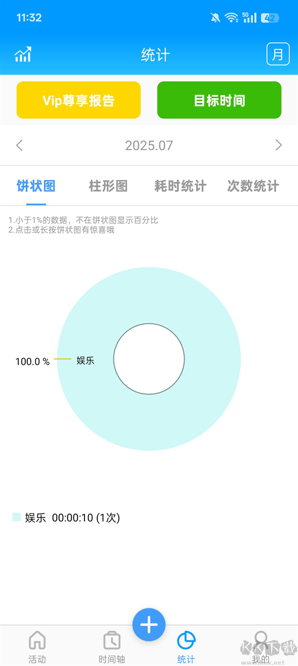 4、還可以在【統(tǒng)計(jì)】里查看各項(xiàng)事宜所占據(jù)的時(shí)長(zhǎng)