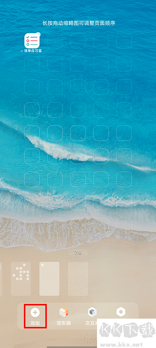 1、手機(jī)桌面頁(yè)面雙指捏合或者桌面空白處長(zhǎng)按,選擇【添加】