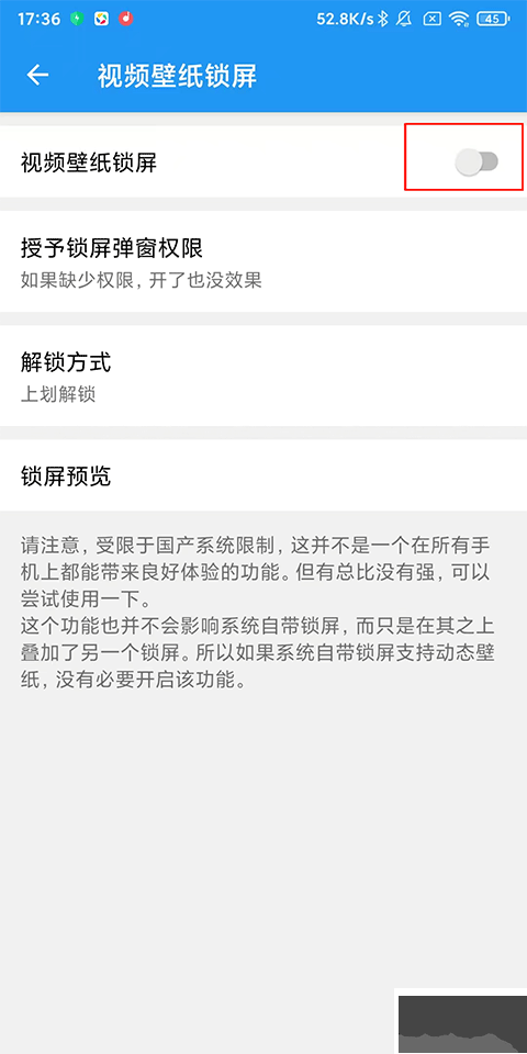 2、在列表中找到并選擇視頻鎖屏功能項(xiàng)。
