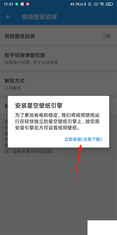 4、根據(jù)指引裝入星空壁紙引擎,選擇馬上安裝。