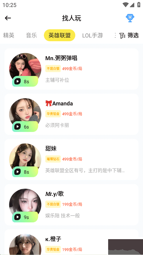 3、在下方列表瀏覽并選擇你心儀的語音伙伴。