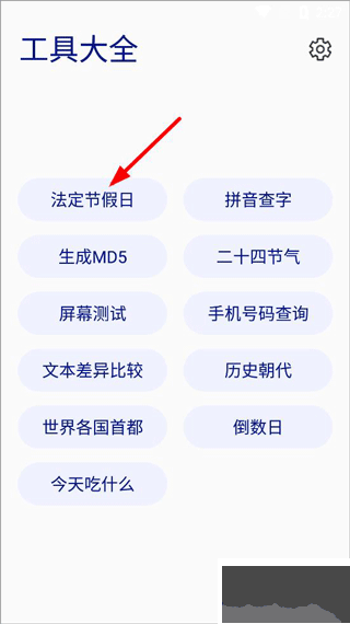 1、啟動木匣袋袋應用,在主界面看到齊全的器具集合,可挑選個人想了解的欄目(例如官方假日)。
