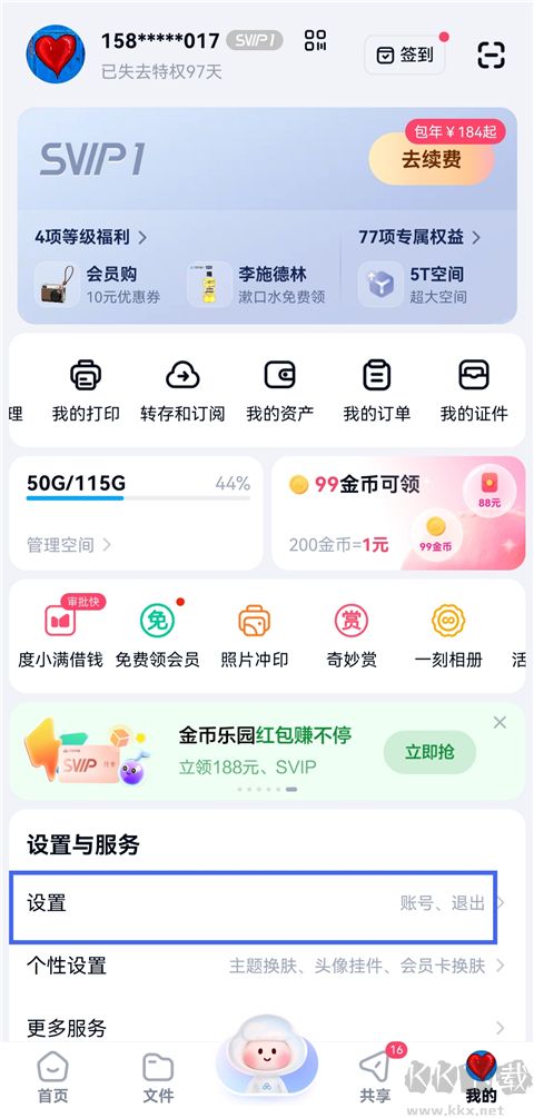 1、打開(kāi)百度網(wǎng)盤(pán)app,點(diǎn)擊【設(shè)置】。