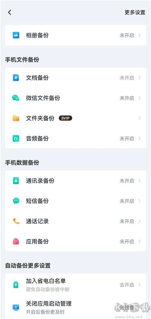 3、在這里,大家可以按自己所需開(kāi)啟和關(guān)閉相關(guān)備份。