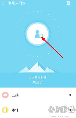 3、之后就可以通過登錄另一個(gè)手機(jī)的換機(jī)同步助手,點(diǎn)擊云端將聯(lián)系人信息同步下來。