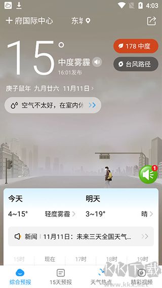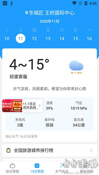 3、選擇15天預(yù)報(bào),可以看到從今天到往后的15內(nèi)的天氣狀況;