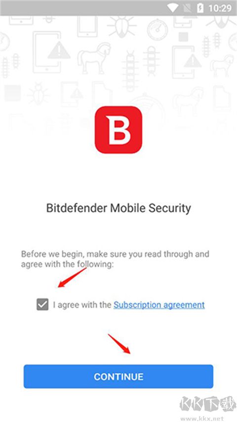 1、下載安裝好了bitdefender安卓版后打開應(yīng)用,同意協(xié)議后點(diǎn)擊進(jìn)入;