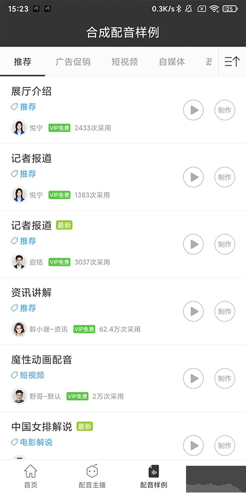 3、多場景配音模板:涵蓋政企宣傳片、商業(yè)廣告、彩鈴等多種TTS(Text-to-Speech)配音場景模板。