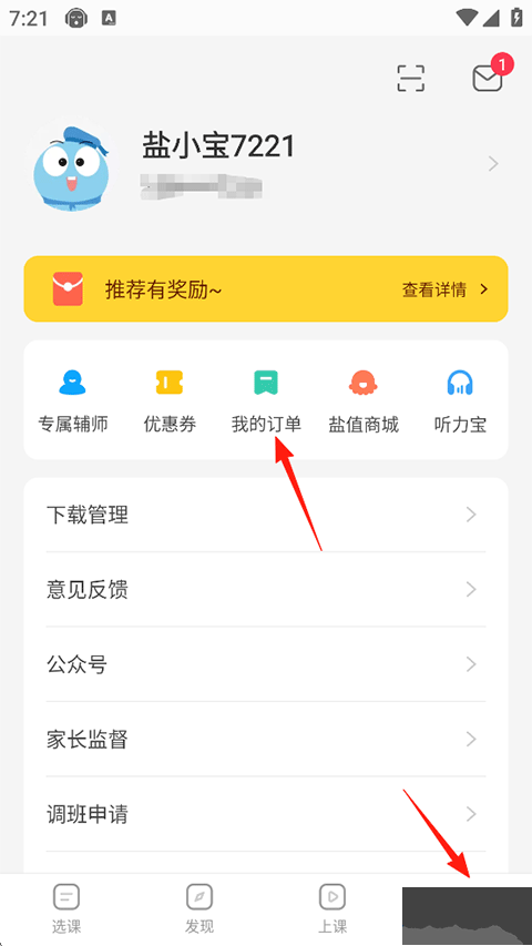 1、打開(kāi)鹽課堂APP,點(diǎn)擊我的-我的訂單;