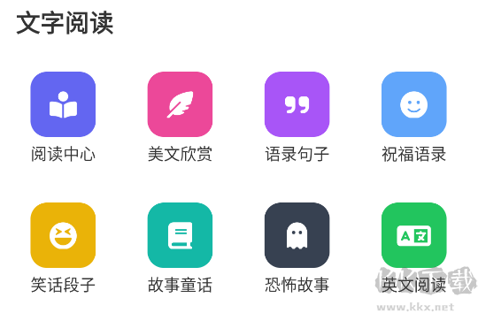 包含散文精選、寓言傳說、幽默集錦等文字類別,同時配備雙語對照閱覽模式。
