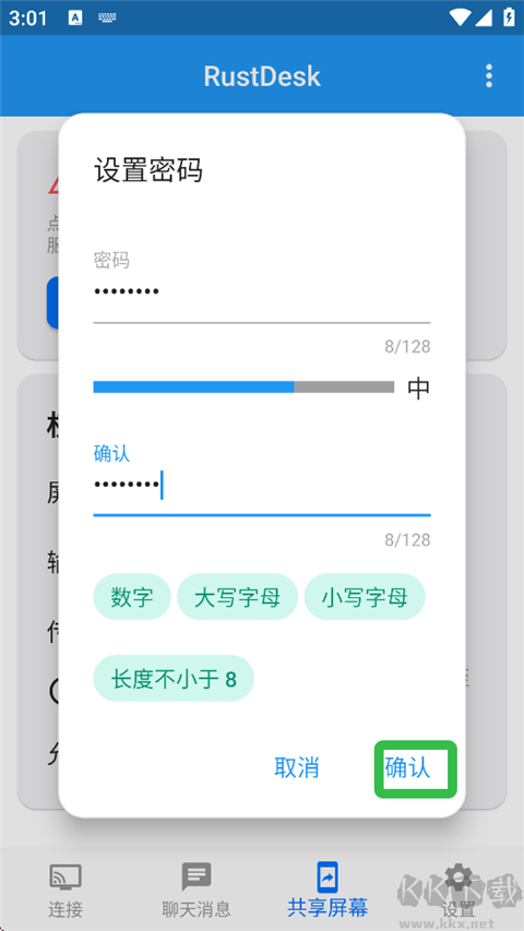 4、密碼達(dá)到要求后,粉色信息變?yōu)榫G色,點(diǎn)擊【確認(rèn)】即可。