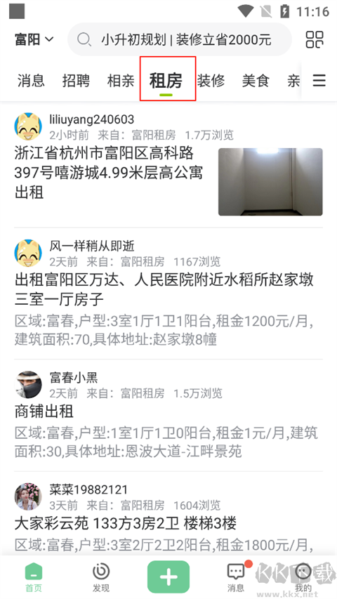 1、在19樓App首頁找到租房板塊