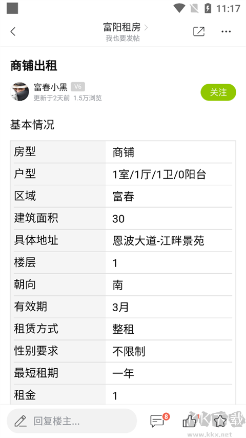 2、選擇發(fā)帖人發(fā)布的信息,查看基本情況