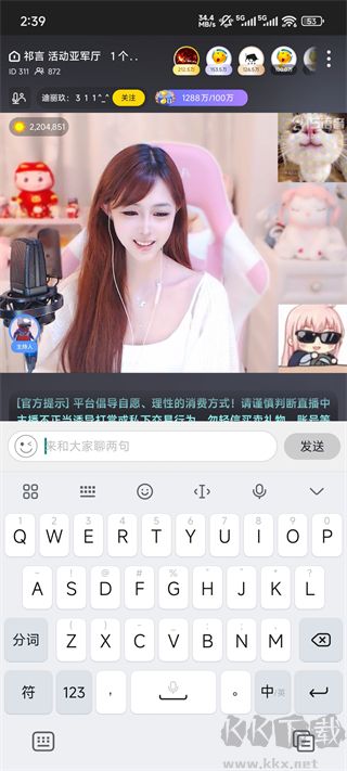2、找到心儀的內(nèi)容,進(jìn)入其直播空間,你可以用文字與他溝通對話。