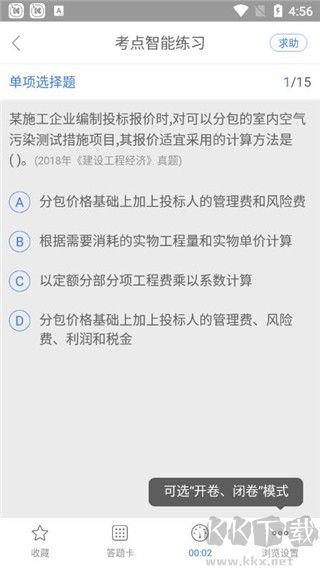 4、任意進(jìn)入一個(gè)練習(xí)模塊,可選擇模擬考試或開放練習(xí)模式。