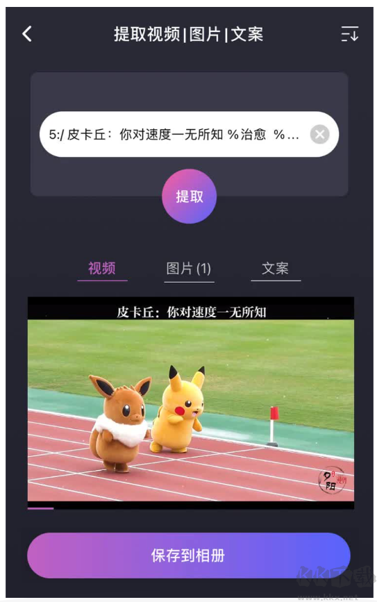 3、復(fù)制成功后,打開本軟件,點(diǎn)擊首頁的【提取視頻|圖片】,進(jìn)入頁面后,粘貼剛才復(fù)制的鏈接到輸入框,點(diǎn)擊【提取】即可
