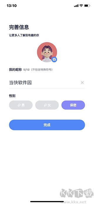2、接著填寫個人昵稱并更換圖片標(biāo)識,選定性別或設(shè)置為隱藏。
