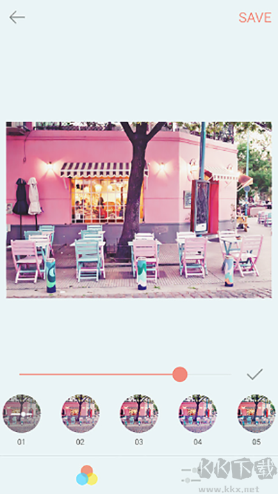 4、配備濾鏡強(qiáng)度調(diào)節(jié)滑桿,自由掌控照片美化幅度。