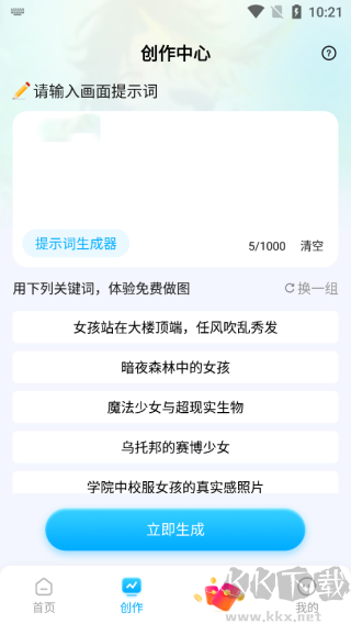 3、下劃對圖片進(jìn)行編輯,點(diǎn)擊立即生成
