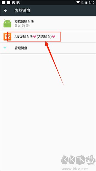 2、軟件將調(diào)到手機(jī)鍵盤設(shè)置界面,將輸入法設(shè)為友友輸入法。