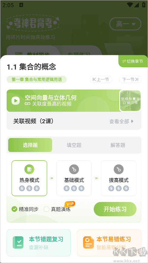 高中數(shù)學(xué)app是一款為高中生打造的智能刷題軟件,擁有函數(shù)、概率、導(dǎo)數(shù)等高考重點(diǎn)難點(diǎn)模塊,貼合課程進(jìn)度提供系統(tǒng)講解。內(nèi)置真題題庫(kù),搭配視頻解析、錯(cuò)題整理功能,還支持推薦個(gè)性化學(xué)習(xí)計(jì)劃,幫助學(xué)生高效復(fù)習(xí)、精準(zhǔn)提分。軟件設(shè)有三大題型實(shí)戰(zhàn)模擬、重難知識(shí)點(diǎn)全章節(jié)梳理和??紝n}集錦,幫助輕松推進(jìn)高考沖刺總復(fù)習(xí)。需要的朋友快來下載試試吧!
