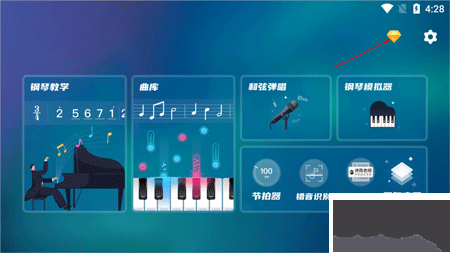 1、打開來音鋼琴app,點擊右上角鉆石圖樣;