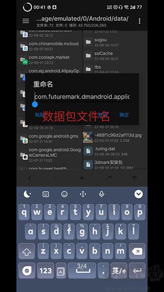 2、把數(shù)據(jù)包解壓到路徑/storage/emulated/0/Android/data/里面然后重命名把數(shù)據(jù)包為com.futuremark.dmandroid.application只下了測試經(jīng)常用的Wild Life。