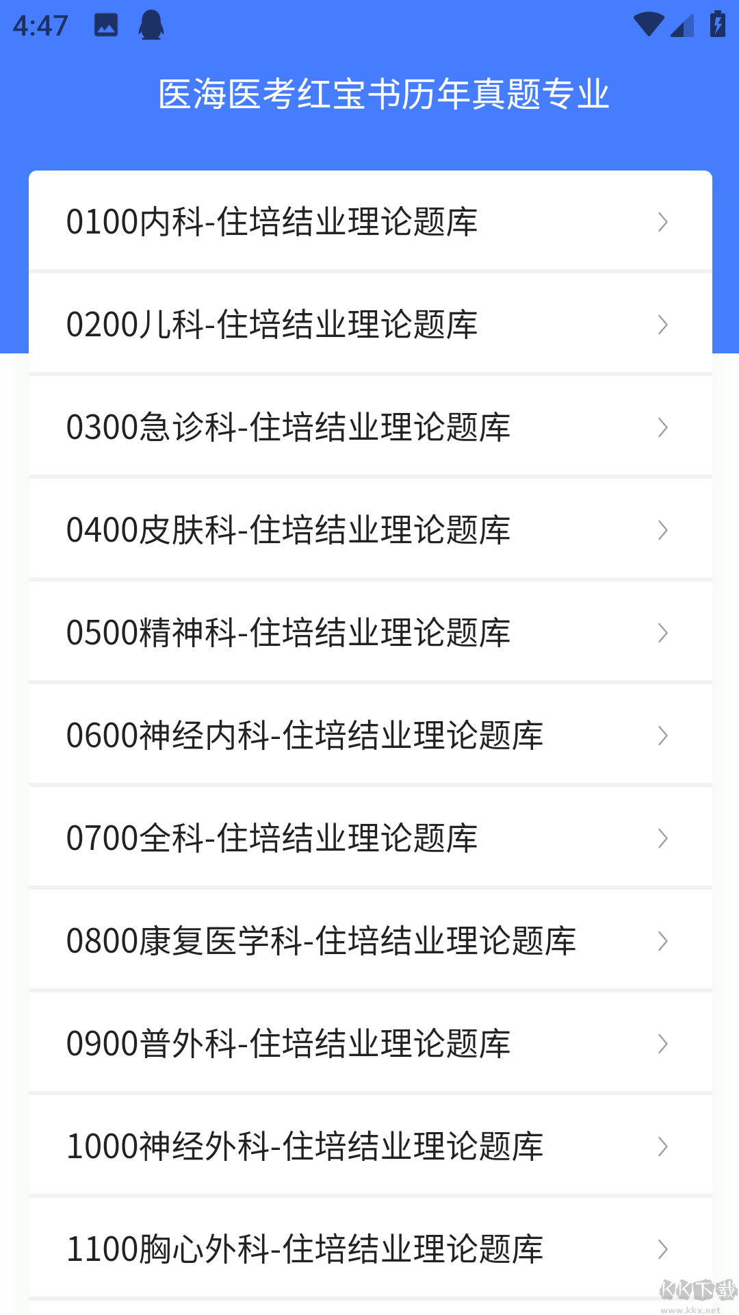 5、選擇你需要的各科室各專業(yè)的題庫