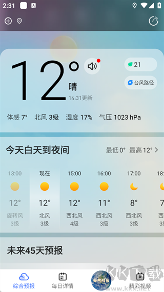 根據(jù)你的定位實時展示天氣狀況,并提供體感溫度、風(fēng)向風(fēng)力、濕度、氣壓等詳細(xì)數(shù)據(jù)幫助用戶全面掌握天氣變化。