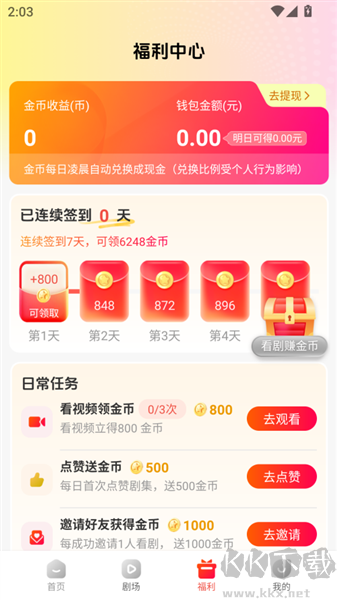 4、軟件看劇都是有獎(jiǎng)勵(lì)的哦!做任務(wù)獲取更多獎(jiǎng)勵(lì)和福利。