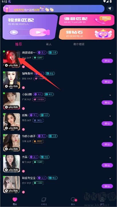 3、進(jìn)入首頁(yè)界面可瀏覽系統(tǒng)推薦的用戶列表,選擇心儀的用戶點(diǎn)擊頭像進(jìn)入查看。
