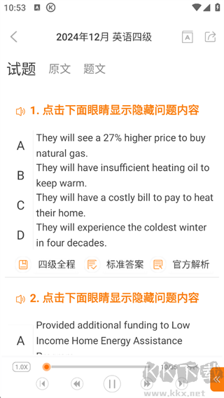 6、支持在線進(jìn)行四級(jí)聽力訓(xùn)練,可直接收聽聽力真題,有效提升聽力能力。