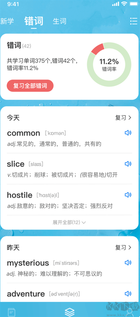 遇到暫時記不住的單詞,可先收藏進生詞本,系統(tǒng)會持續(xù)提醒復習。