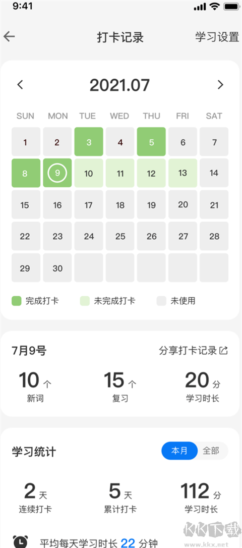 每天抽出一點時間學習,可按單詞數(shù)量或?qū)W習時長靈活安排。