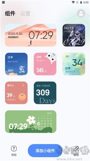 3、擁有超多不同類型的精美小組件:倒數(shù)日、桌面時鐘、天氣、日歷、句子語錄、日常打卡等好玩又好看的小組件,快來添加到手機桌面上!