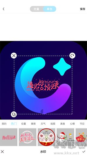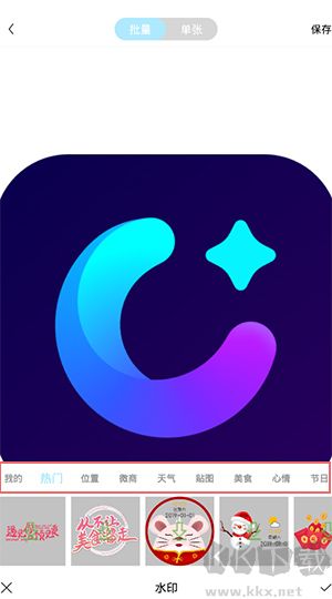 4、內(nèi)置豐富水印樣式,用戶還可上傳自定義水印素材,為照片打上專屬標(biāo)識(shí)。