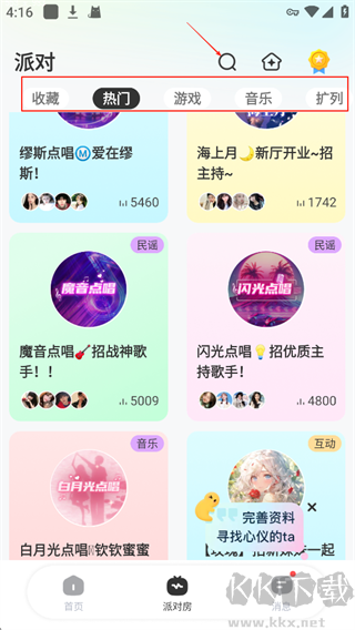 1、打開求帶App點(diǎn)擊派對(duì)房